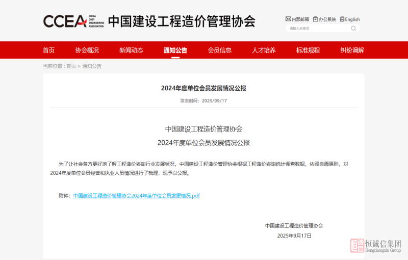 2024年度全國造價咨詢百強企業公布 | 北京恒誠信蟬聯全國前十